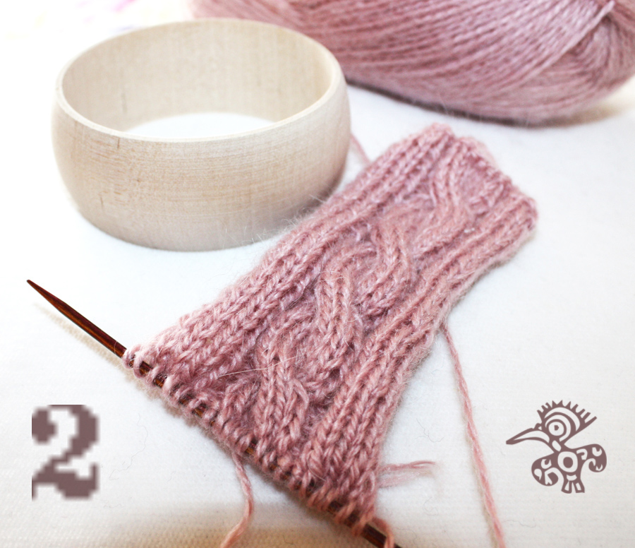 Zrobiłam kolejne mitenki szare z rombami i podobne białe z perełkami
